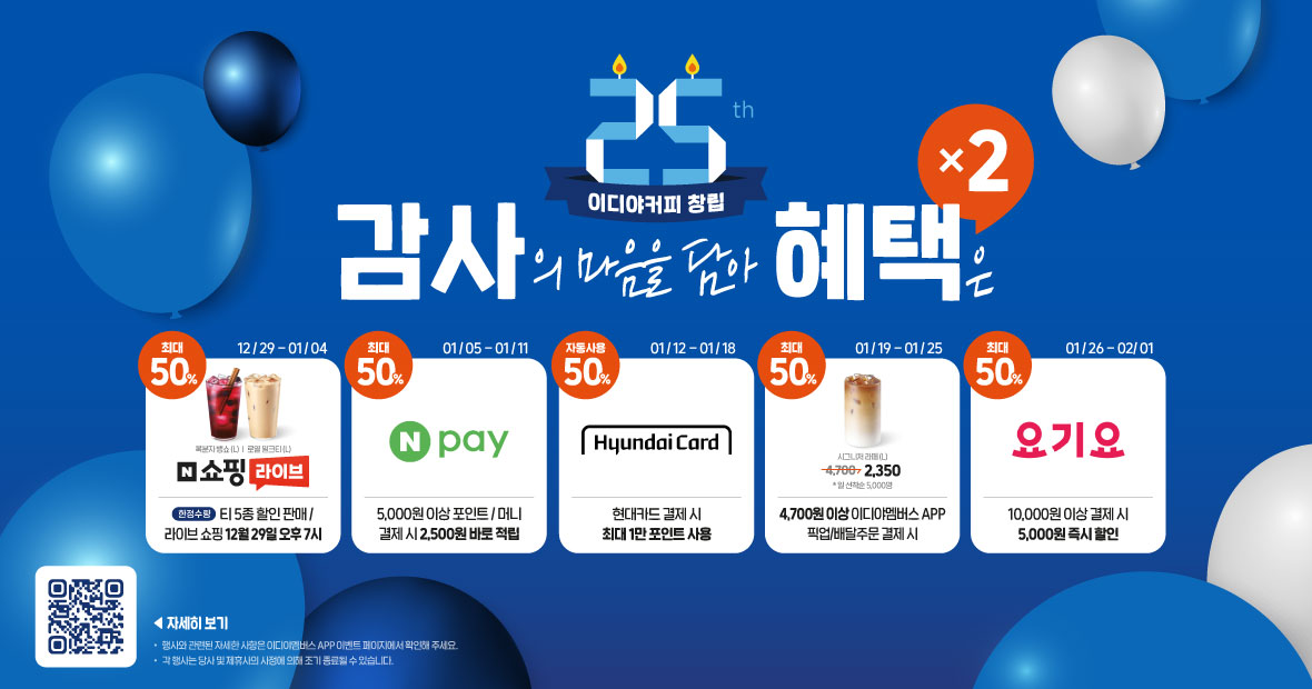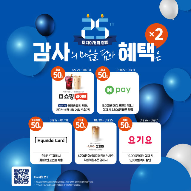 늘 당신 곁에, 이디야 커피의 다양한 메뉴를 맛보세요.