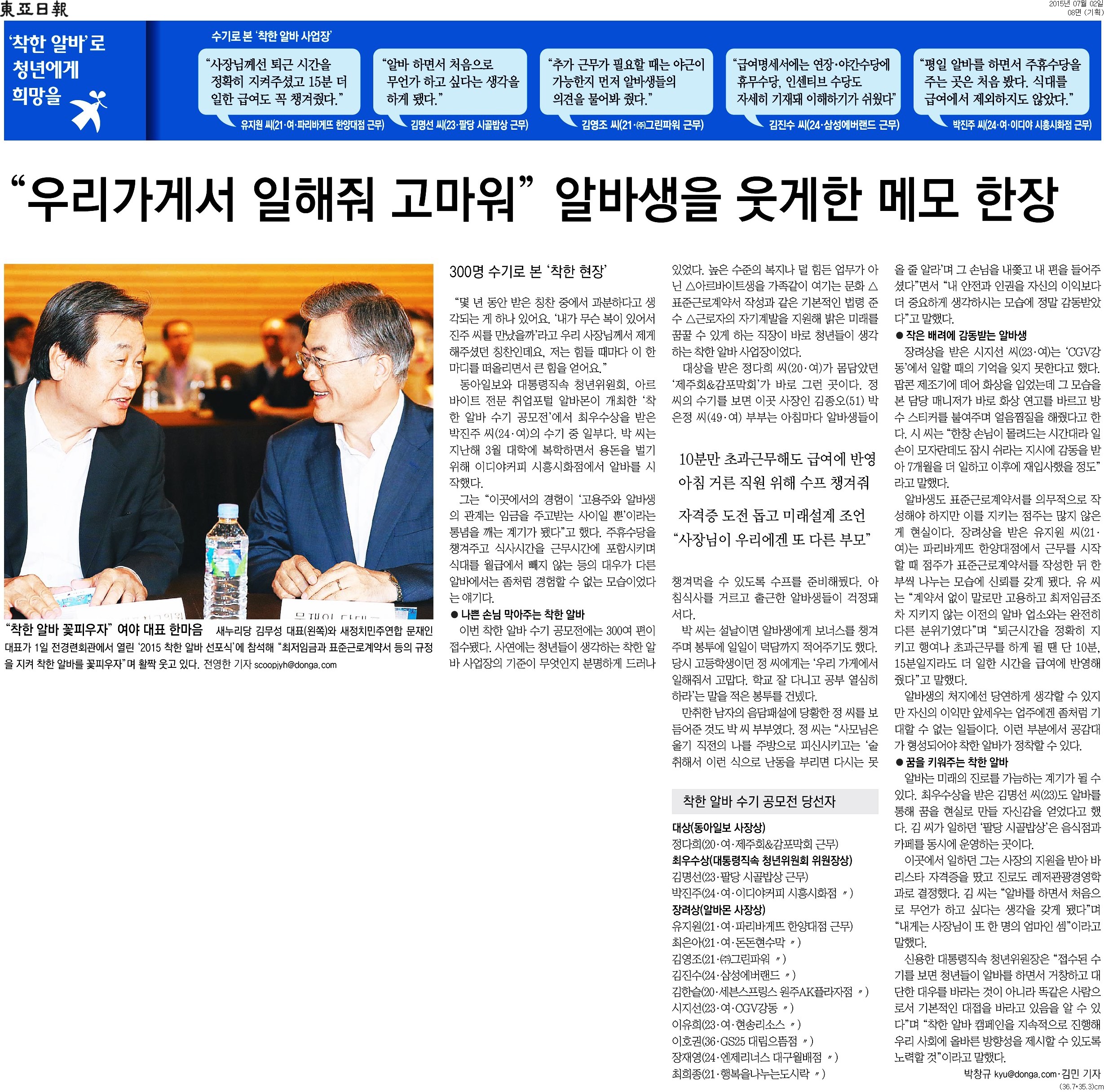 ■ 기사명 : ‘착한 알바 사업장’에서 꿈을 벌었습니다