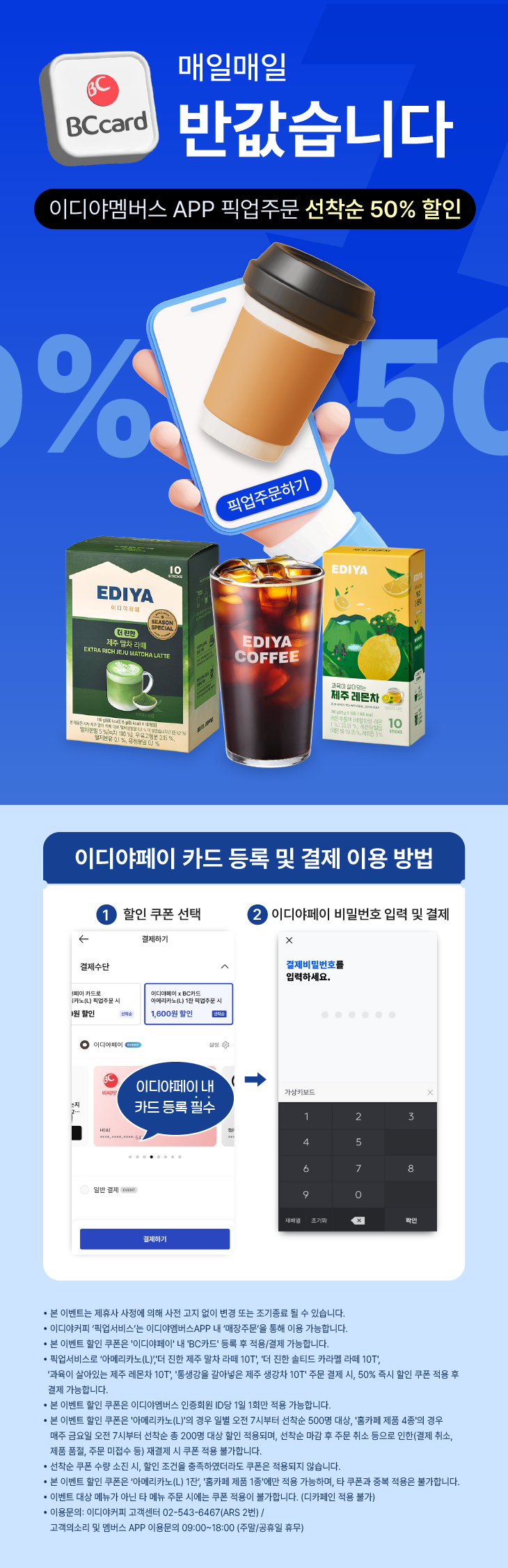 3월 이디야 멤버스 앱 픽업 주문 50% 할인