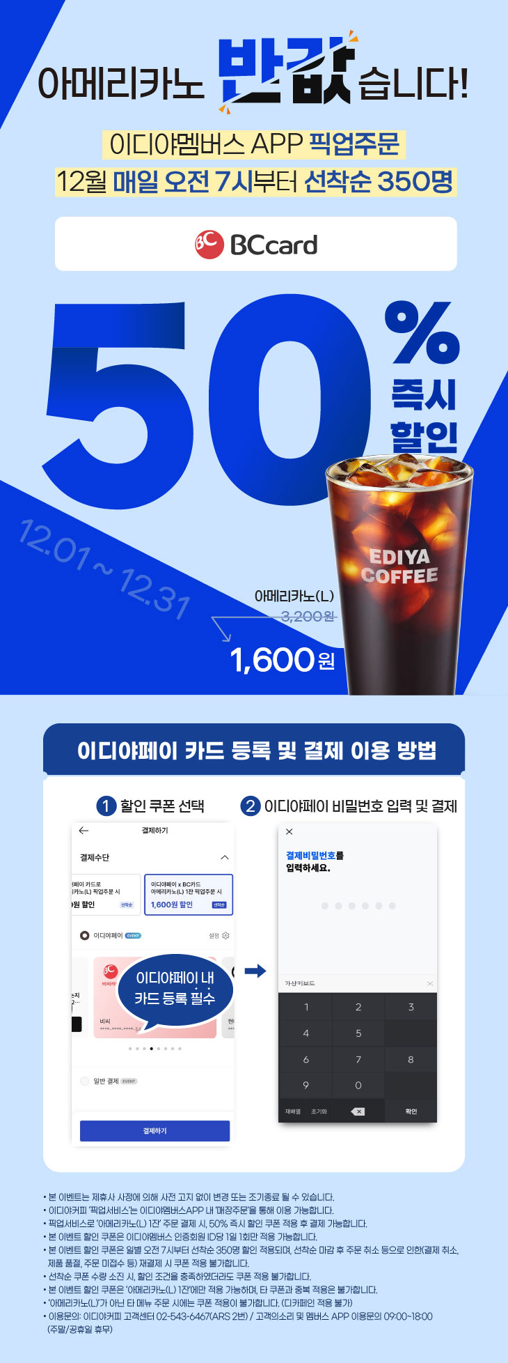 12월 이디야 멤버스 픽업주문 50% 할인 이벤트