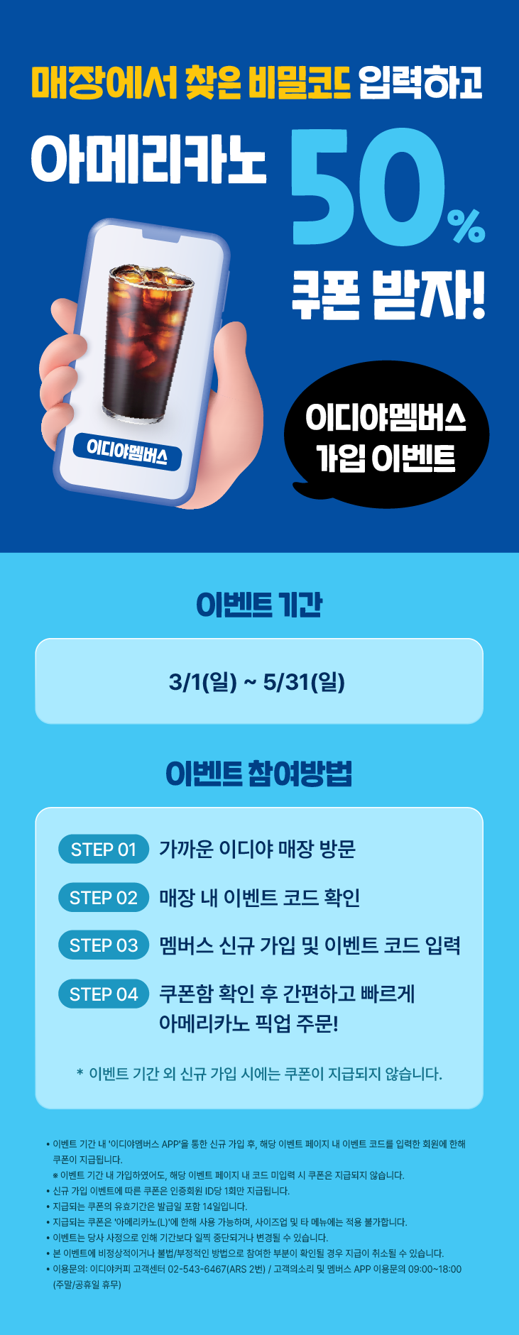 국내 커피문화를 선도하는 이디야에서 준비한 문화 이벤트에 참여하세요.