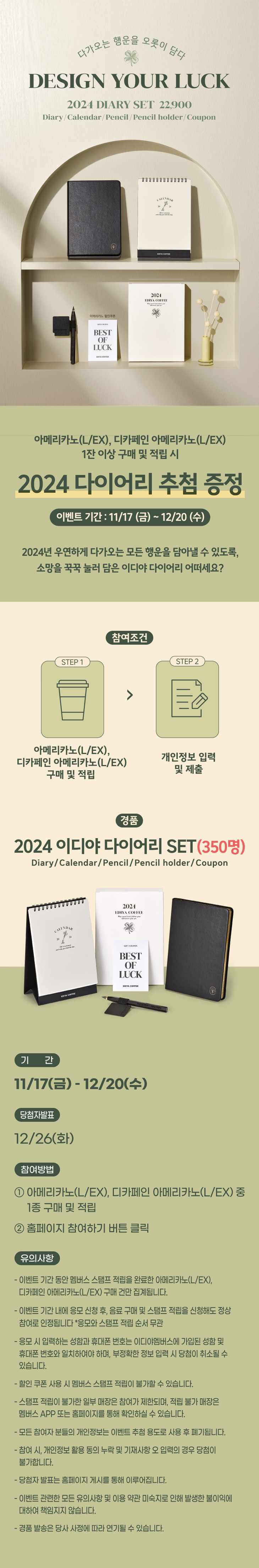 2024년 우연하게 다가오는 모든 행운을 담아낼 수 있도록, 소망을 꾹꾹 눌러 담은 이디야 다이어리 어떠세요?