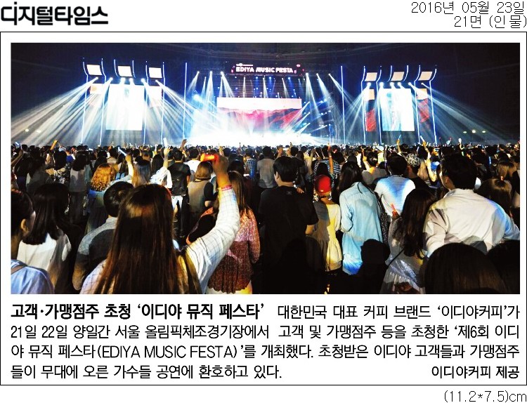 이디야커피의 고객 감사 무료 콘서트, '제6회 이디야 뮤직페스타'가 디지텉타임스에 보도되었습니다