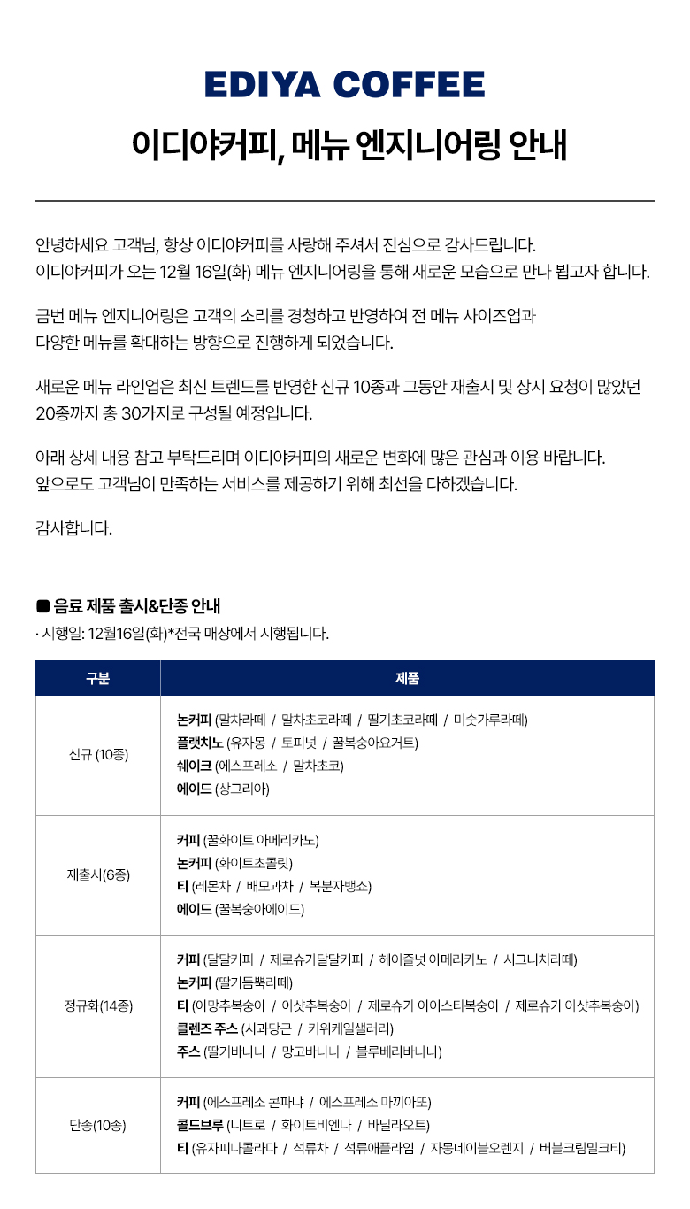 이디야는 국내 브랜드의 자부심을 지키며 대한민국 커피 문화를 이끌어 나갑니다.